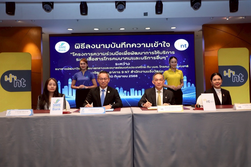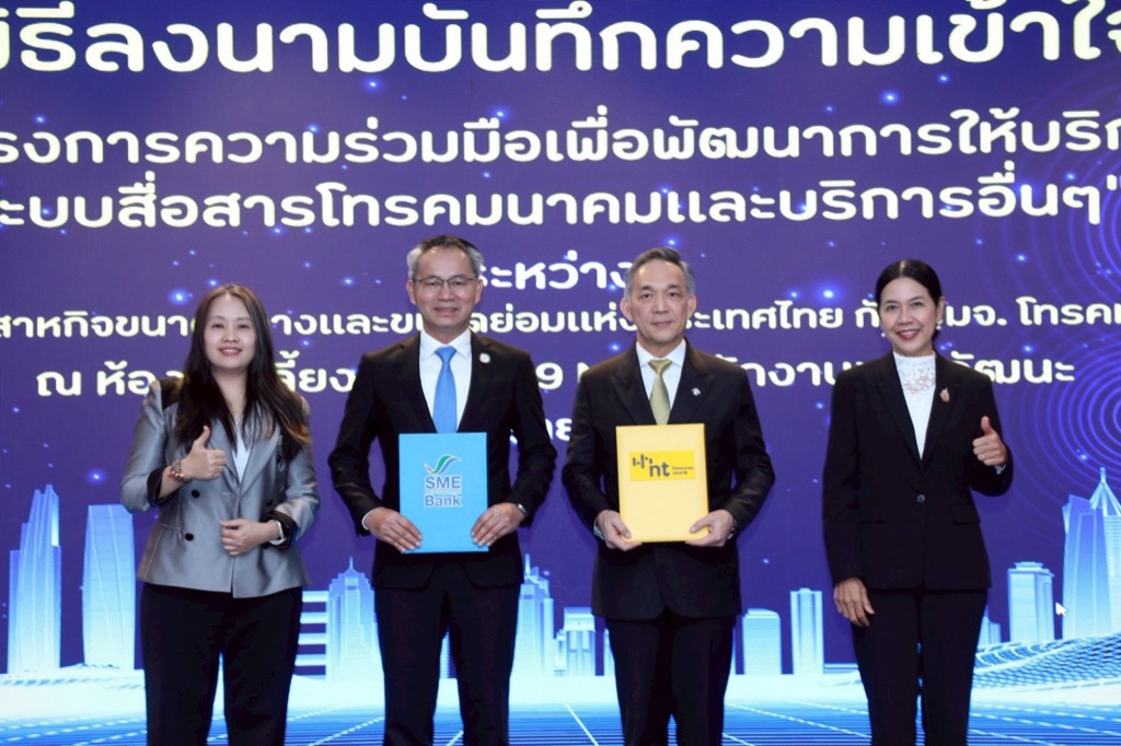 NT ผนึกความร่วมมือ SME D Bank สนับสนุนผู้ประกอบการเอสเอ็มอีเพิ่มศักยภาพด้านเทคโนโลยีสื่อสาร ก้าวทันธุรกิจยุคดิจิทัลในอนาคตด้วยโครงสร้างพื้นฐานและบริการของ NT พร้อมเติมทุนสินเชื่อปรับปรุงระบบเทคโนโลยีทันสมัยอัตราดอกเบี้ยพิเศษเพียง 3% ต่อปี