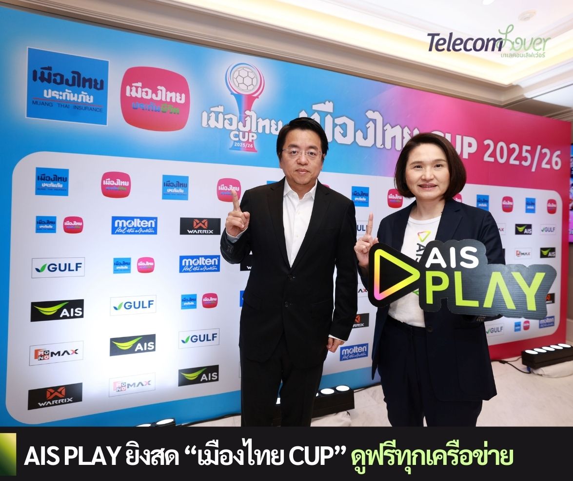 AIS PLAY ร่วมกับ สมาคมกีฬาฟุตบอลแห่งประเทศไทย ในพระบรมราชูปถัมภ์ เตรียมสร้างปรากฏการณ์ใหม่ให้วงการลูกหนังไทย ด้วยการถ่ายทอดสดการแข่งขันฟุตบอล “เมืองไทย CUP” ตลอดฤดูกาล 2025/26 ยกระดับประสบการณ์การรับชมให้กับแฟนบอลไทยทั่วประเทศ ด้วยภาพคมชัดระดับ Full HD และเทคโนโลยีถ่ายทอดสดล้ำสมัย บนโครงข่ายอัจฉริยะของ AIS ทั้งมือถือและเน็ตบ้านครอบคลุมทั่วประเทศ