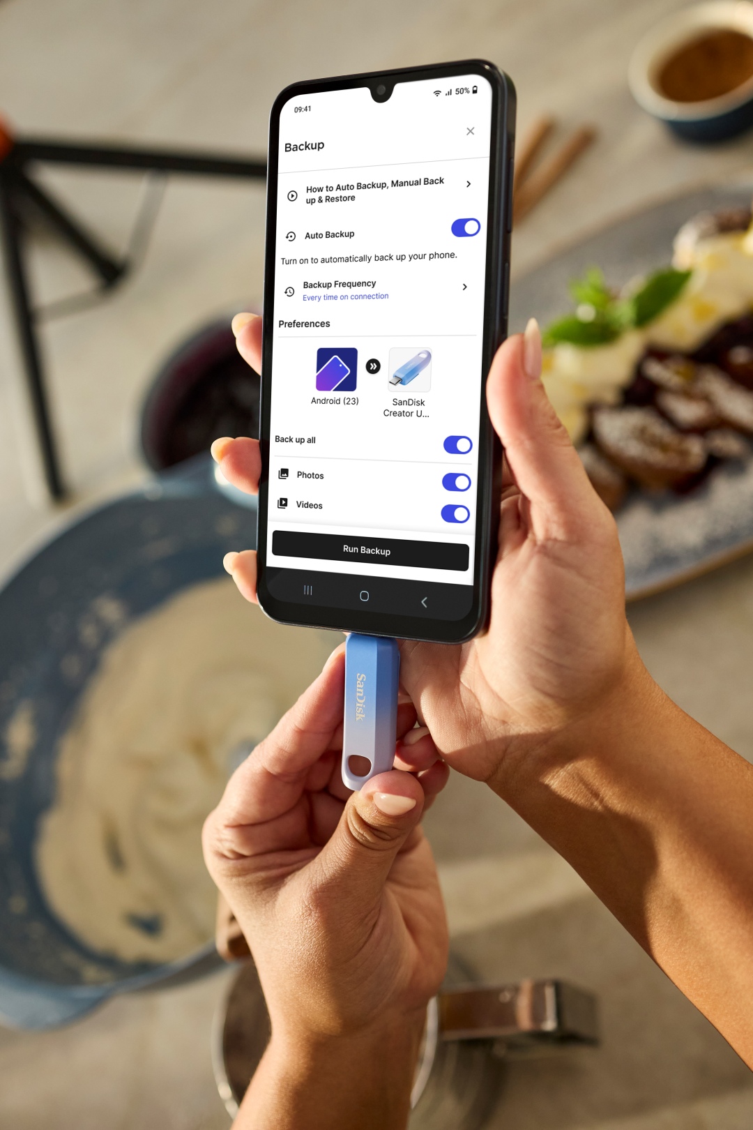 ไดรฟ์นี้ยังช่วยครีเอเตอร์สำรองคอนเทนต์บนสมาร์ทโฟนได้ง่าย ๆ เพียงใช้แอป SANDISK