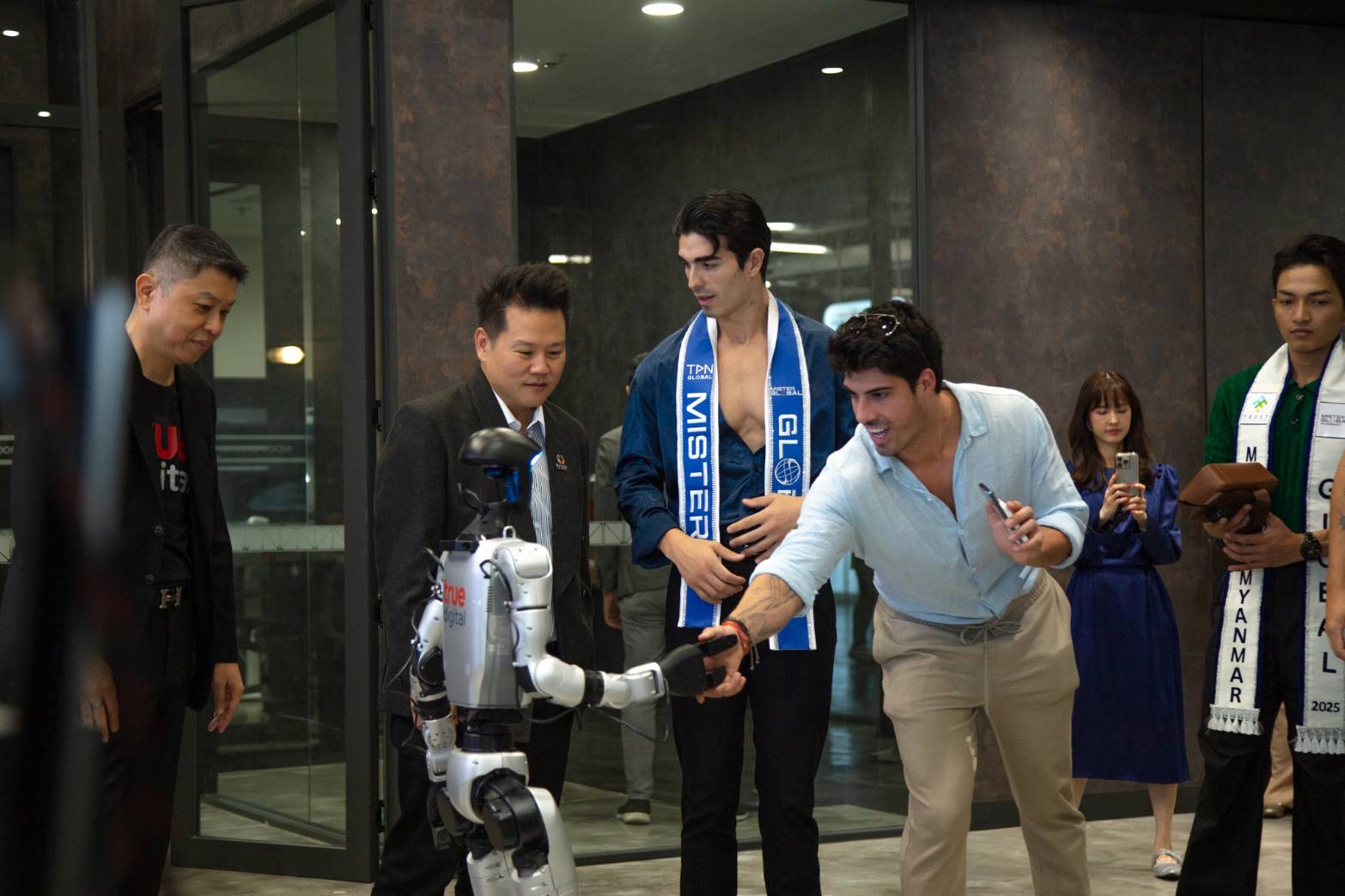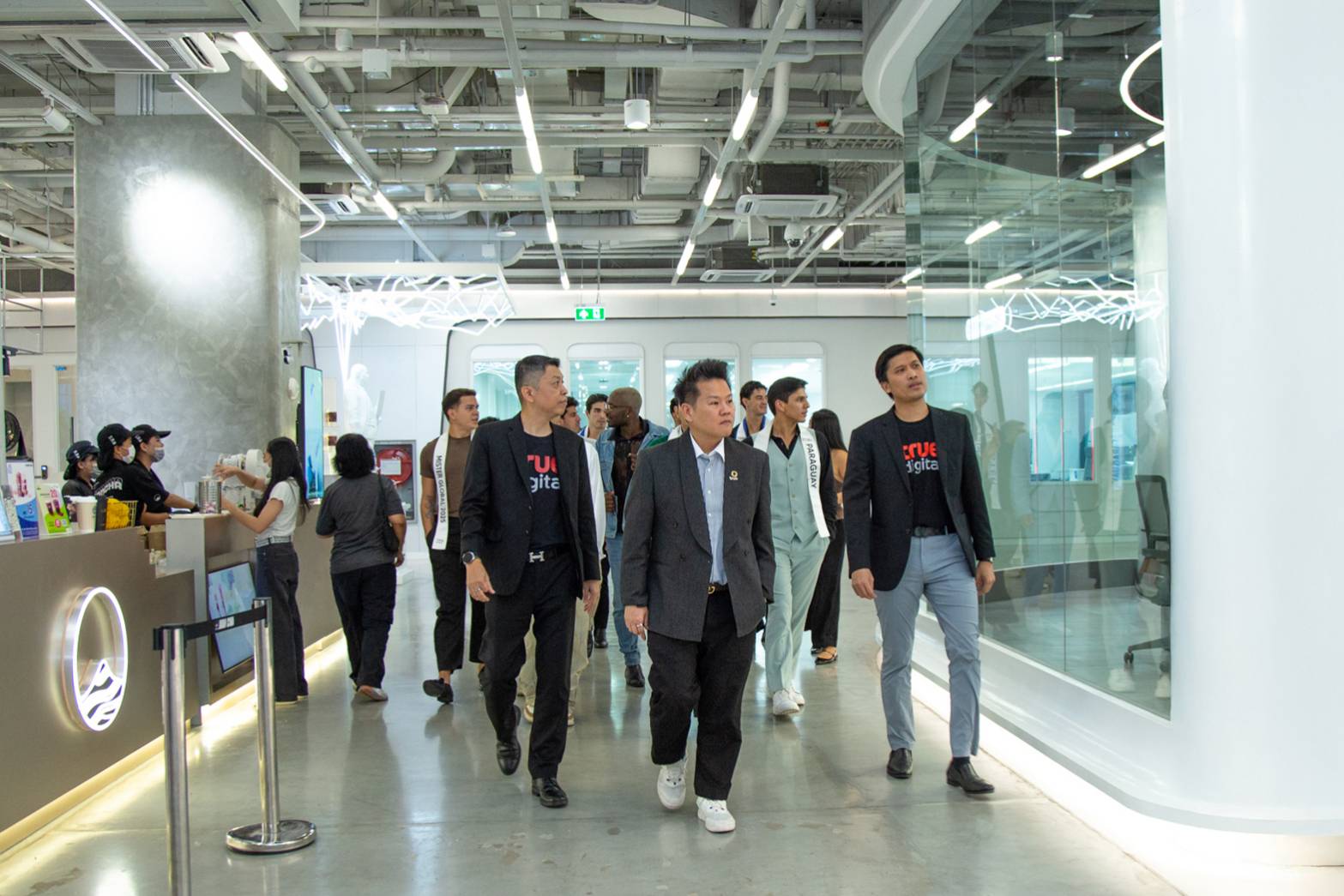 คณะผู้เข้าประกวดนำโดย Alejandro Ortega จากประเทศสเปน ผู้ชนะเลิศอันดับ1 Mister Global 2025 พร้อมคณะผู้ประกวดจากหลากหลายประเทศ ได้เยี่ยมชม บรรยากาศของทรู ดิจิทัล พาร์ค ศูนย์กลางเทคโนโลยีและสตาร์ทอัพที่ใหญ่ที่สุดในอาเซียน และเยี่ยมชม Center of Excellence (CoE)“ระบบนิเวศแห่งนวัตกรรม” ที่เชื่อมโยงโลกชีวภาพ โลกดิจิทัล และโลกข้อมูลไว้ด้วยกัน พร้อมเปิดประสบการณ์สุดล้ำที่ Digital & AI Lab ศูนย์วิจัยและนวัตกรรมและเอไอ โดยทรู ที่ผนึกพลังพันธมิตรระดับโลก มหาวิทยาลัย หน่วยงานรัฐ เอกชน และสตาร์ทอัพ เพื่อร่วมกันขับเคลื่อนประเทศไทยก้าวสู่ เศรษฐกิจดิจิทัลเต็มรูปแบบ Digital & AI Lab แห่งนี้ แบ่งเป็น 5 โซนนวัตกรรมล้ำสมัย ตั้งแต่ Ideation Zone พื้นที่จุดประกายความคิดสร้างสรรค์, Co-Creation Zone สำหรับทำงานร่วมกันแบบ Co-working pods, Training & Learming Zone ยกระดับทักษะบุคลากรทุกระดับผ่านห้องเรียนอัจฉริยะ R&ED Deep Rescarch Zone ที่เปลี่ยนแนวคิด ให้กลายเป็นนวัตกรรมจริงด้วยห้องแล็บ AI/ML และ IoT Robotics ไปจนถึง Experience Zone ที่เปิดโอกาสให้ทุกคนได้สัมผัสนวัตกรรมแห่งอนาคต ไม่ว่าจะเป็น Smart Store, Smart Healthcare หรือ Smart Home & Office ขณะเดียวกัน จะมีการควบรวมเทคโนโลยี ยุคใหม่ อาทิ Cloud, AI, Robotics, 5G, IoT และ Blockchain เพื่อสร้างนวัตกรรม ระดับ Flagship ตัวอย่าง เช่น หุ่นยนต์อัจฉริยะ
