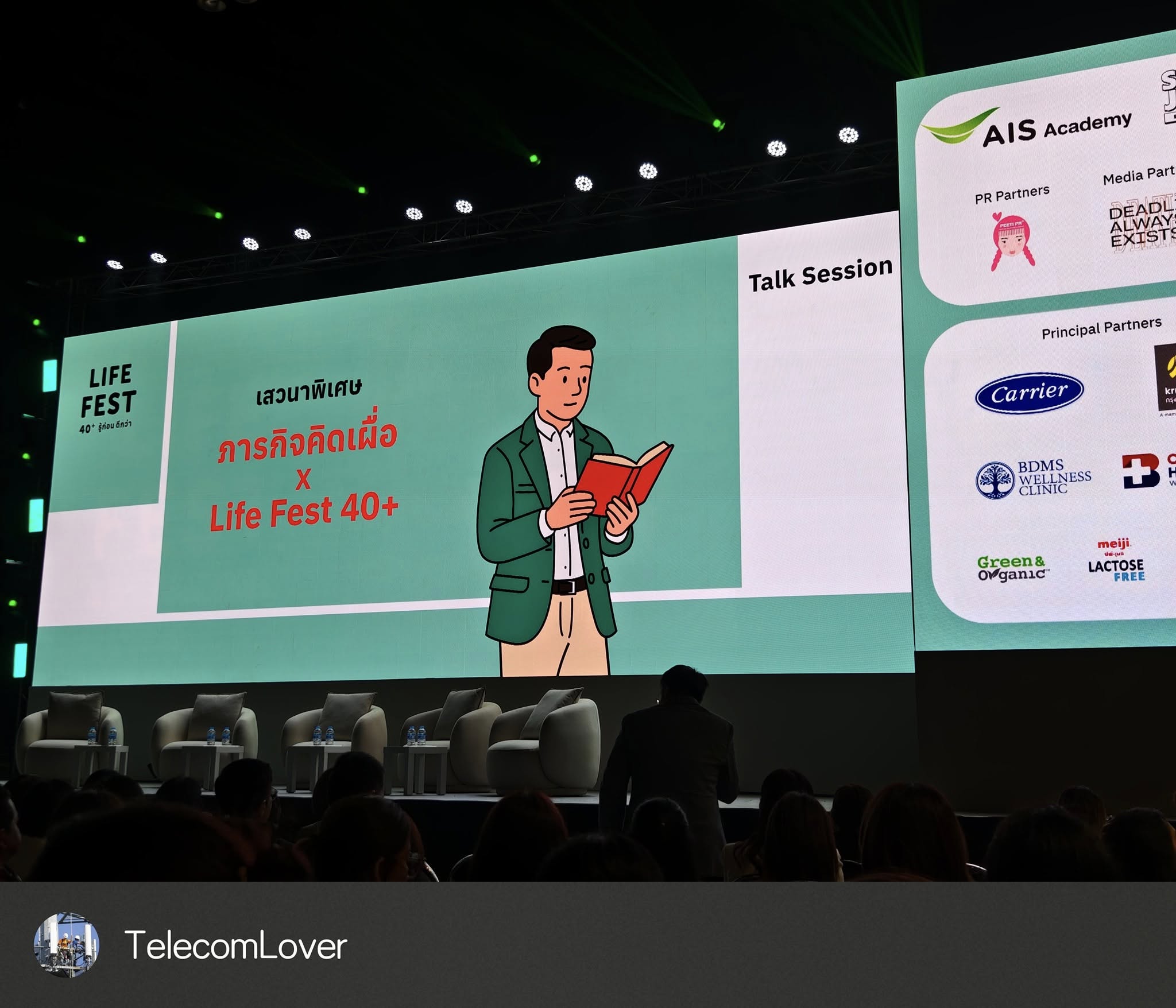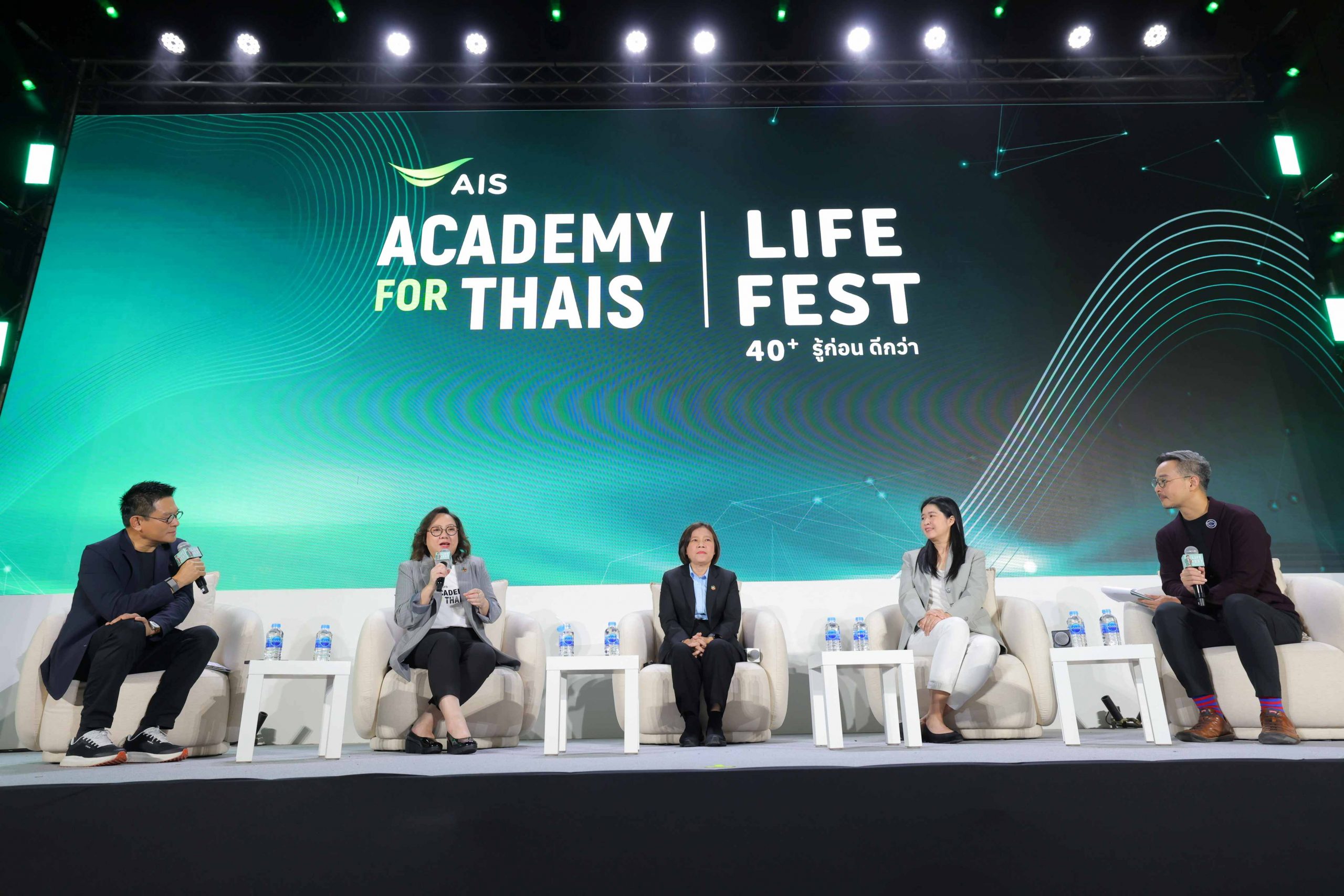 ช่วงบ่ายกับเวทีสัมมนา “ภารกิจคิดเผื่อ “Life Hack 40+ …รู้ก่อน ยังทัน” ได้รับความสนใจจากผู้เข้าร่วมอย่างคับคั่ง เพราะเป็นพื้นที่ที่บูรณาการองค์ความรู้ครบทั้ง 5 มิติสำคัญต่อการใช้ชีวิต ได้แก่ การวางแผนการเงินให้มั่นคงท่ามกลางเศรษฐกิจที่ผันผวน การดูแลสุขภาพเพื่อป้องกันโรคและยืดอายุความแข็งแรง การเติมพลังใจและทัศนคติใหม่เพื่อก้าวข้ามความท้าทาย การออกแบบวิถีชีวิตและสิ่งแวดล้อมให้สมดุล และการใช้เทคโนโลยีดิจิทัลเพื่อทำให้ชีวิตสะดวก ปลอดภัย และก้าวทันโลก เนื้อหาทั้งหมดไม่เพียงสร้างแรงบันดาลใจ แต่ยังเป็นภาพสะท้อนของ “การเรียนรู้เพื่อการปรับตัว” ที่ AIS Academy มุ่งผลักดันอย่างต่อเนื่อง เพื่อให้คนไทยทุกช่วงวัยมีองค์ความรู้ที่ทันสมัย ใช้ได้จริง และพร้อมเผชิญอนาคตอย่างมั่นใจ