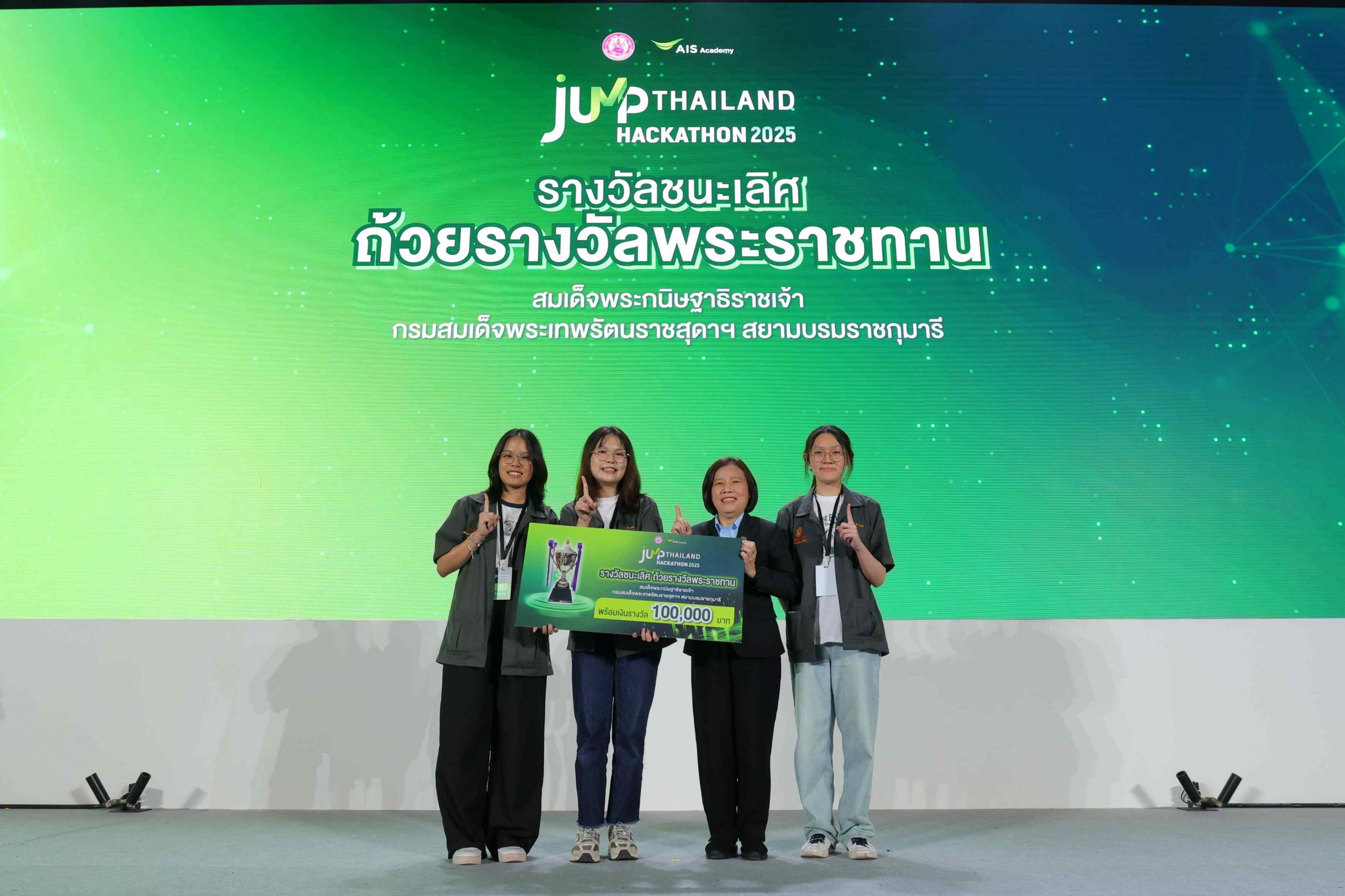 AIS มองเห็นพลังของคนรุ่นใหม่ที่กำลังจะเป็นแรงขับเคลื่อนประเทศในอนาคต ทั้งความคิดสร้างสรรค์ ทักษะดิจิทัล และหัวใจที่อยากทำเพื่อสังคม “JUMP THAILAND” จึงไม่ใช่แค่โครงการ แต่เป็นเวทีที่พิสูจน์ว่า เมื่อเปิดโอกาสให้คนรุ่นใหม่ได้แสดงศักยภาพ ความเปลี่ยนแปลงที่ยิ่งใหญ่ก็เกิดขึ้นได้จริง ในปีนี้เราได้เห็นพลังของนิสิต นักศึกษา ที่จับมือกับพนักงานอุ่นใจอาสาสร้างสรรค์นวัตกรรม ที่ไม่ได้หยุดแค่ไอเดีย แต่ตั้งใจจะเปลี่ยนคุณภาพชีวิตของผู้คน ลดช่องว่างความเหลื่อมล้ำ และรับมือกับโจทย์ท้าทายระดับประเทศ นวัตกรรมจากเวทีนี้เปรียบเสมือนแสงไฟเล็กๆ ที่พร้อมส่องประกาย และเมื่อแสงไฟเหล่านี้ถูกรวมกัน จะกลายเป็นพลังที่ส่องสว่างให้สังคมไทยก้าวไปข้างหน้าอย่างแข็งแรงและยั่งยืน เพราะเรามั่นใจว่าทุกความคิด ทุกโอกาส และทุกการลงมือทำ จะกลายเป็นก้าวสำคัญที่สร้างความเปลี่ยนแปลงให้กับประเทศได้จริง”