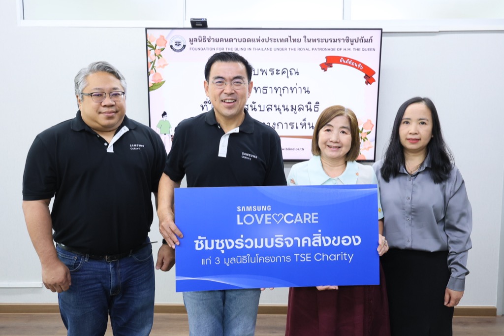 ซัมซุง จัดกิจกรรม “TSE Charity” ภายใต้โครงการ Samsung Love & Care เพื่อเฉลิมฉลองครบรอบ 37 ปี ชวนพนักงานร่วมบริจาคของใช้สภาพดีพร้อมใช้งาน ไม่ว่าจะเป็นเสื้อผ้า ของเล่นเด็ก รองเท้า กระเป๋า และหนังสือ เพื่อนำไปส่งต่อความช่วยเหลือและมอบความอบอุ่นแก่ผู้ด้อยโอกาส ผ่าน 3 มูลนิธิ ได้แก่ มูลนิธิกระจกเงา มูลนิธินกขมิ้น และมูลนิธิช่วยคนตาบอดแห่งประเทศไทยในพระบรมราชินูปถัมภ์ เมื่อวันที่ 17 ตุลาคมที่ผ่านมา