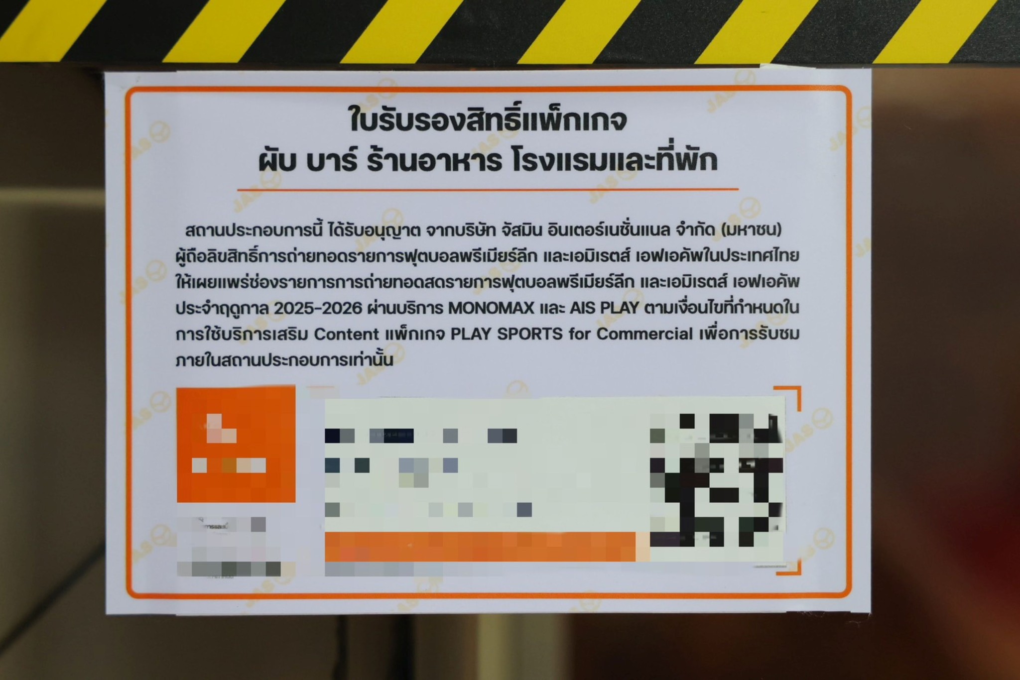 ผู้สมัครแพ็กเกจจะได้รับ ใบรับรองสิทธิ์การถ่ายทอดเชิงพาณิชย์จากเอไอเอส เพื่อยืนยันการได้รับสิทธิ์อย่างถูกต้องตามลิขสิทธิ์ และสามารถนำไปแสดงในสถานประกอบการเพื่อสร้างความมั่นใจให้ลูกค้า ทั้งยังช่วยป้องกันความเสี่ยงทางกฎหมายจากการนำแพ็กเกจที่ให้บริการสำหรับบุคคลทั่วไปมาใช้ในเชิงพาณิชย์ ซึ่งถือว่ามีความเสี่ยงในการละเมิดลิขสิทธิ์และมีความผิดตามกฎหมาย