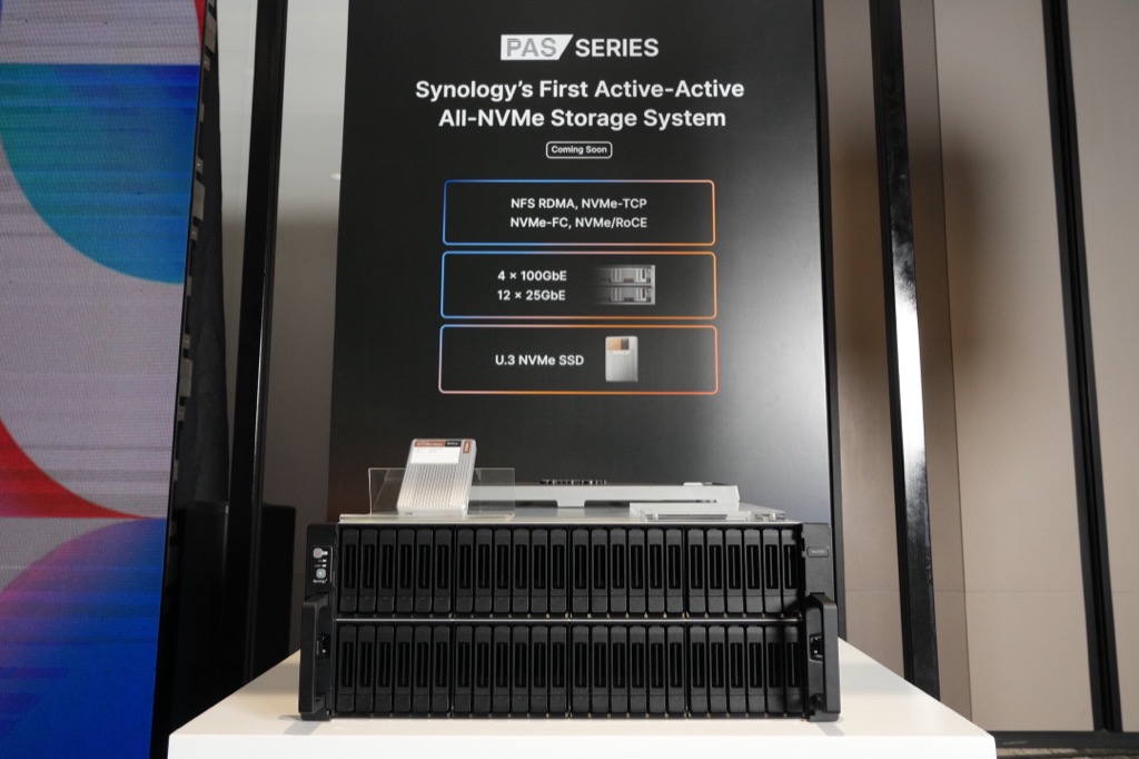 นอกจากนี้ Synology ยังเปิดตัว PAS7700 ระบบจัดเก็บข้อมูลสำหรับองค์กรแบบ All-NVMe รุ่นแรกของบริษัท มอบประสิทธิภาพสูงสุดด้วยสถาปัตยกรรม NVMe ครบวงจร สามารถทำงานได้ถึง 2 ล้าน IOPS และ 30 GB/s throughput โดยมีความหน่วงต่ำกว่า 1 มิลลิวินาที Active-Active Architecture ช่วยให้ระบบพร้อมใช้งานอย่างต่อเนื่อง มาพร้อมกับความสามารถในการ เข้ารหัส (Encryption) ที่แข็งแกร่ง และ ประสิทธิภาพระดับองค์กรทำให้ PAS7700 เป็นทางเลือกที่สมบูรณ์แบบ เหมาะสำหรับงานสำคัญระดับ Mission Critical
