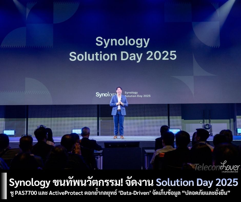 Synology ผู้นำระดับโลกด้านโซลูชันจัดเก็บข้อมูล จัดงาน Synology Solution Day 2025 อย่างยิ่งใหญ่ ณ ห้องแกรนด์ฮอลล์ ทรู ดิจิทัล พาร์ค โดยดึงดูดผู้เชี่ยวชาญด้าน IT กว่า 500 คนเข้าร่วมงาน ภายในงานมีการนำเสนอนวัตกรรมล่าสุดจาก Synology ทั้งด้านการจัดเก็บและบริหารจัดการข้อมูล (Storage & Data Management) การปกป้องข้อมูล (Data & Workload Protection) การเพิ่มประสิทธิภาพการทำงานของธุรกิจ (Business Productivity) รวมถึงระบบกล้องวงจรปิด (Video Surveillance) โดยงาน Synology Solution Day 2025 นับว่าเป็นงานที่จะทำให้ทุกธุรกิจค้นพบกลยุทธ์การจัดการข้อมูลที่จะช่วยขับเคลื่อนธุรกิจของได้อย่างมีประสิทธิภาพ