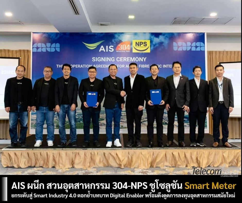 “AIS Business” ผู้ให้บริการดิจิทัลโซลูชั่นสำหรับภาคธุรกิจ ล่าสุดเดินหน้าจับมือ สวนอุตสาหกรรม 304 และ NPS พร้อมยกระดับการบริหารจัดการโครงข่ายอัจฉริยะ AIS Fibre และ 5G ควบคู่โซลูชั่น Smart Meter ร่วมเสริมศักยภาพโครงสร้างพื้นฐานดิจิทัลในพื้นที่สวนอุตสาหกรรม 304 สู่ Smart Industry 4.0 ตอกย้ำบทบาท “Digital Enabler” สร้างความพร้อมในการแข่งขันให้แก่ผู้ประกอบการที่มุ่งเน้นประสิทธิภาพ ความเสถียร และความคุ้มค่า ตลอดจนดึงดูดการลงทุนในอุตสาหกรรมสมัยใหม่