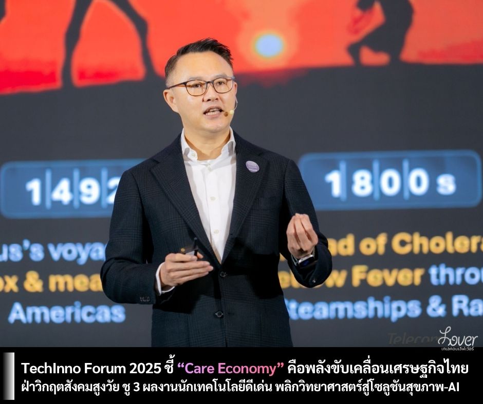 รายงานจากงานสัมมนาด้านเทคโนโลยี Outstanding Technologist Awards & TechInno Forum 2025 ภายใต้แนวคิด “The Care Economy: Connecting Innovation and Humanity” หรือ “เศรษฐกิจใส่ใจ เชื่อมโยงนวัตกรรมกับความเป็นมนุษย์” ที่จัดโดยมูลนิธิส่งเสริมวิทยาศาสตร์และเทคโนโลยีในพระบรมราชูปถัมภ์ ร่วมกับ สมาคมการจัดการธุรกิจแห่งประเทศไทย (TMA) โดยมี กูรู เศรษฐกิจด้าน ESG และนวัตกรรมเข้าร่วมบรรยายและแลกเปลี่ยนมุมมองความคิด ระบุ “Care Economy” หรือ เศรษฐกิจใส่ใจ แนวคิดเศรษฐกิจรูปแบบใหม่ที่ให้ความสำคัญกับการดูแลสุขภาพกายและใจของผู้คน ควบคู่ไปกับการพัฒนานวัตกรรมและเทคโนโลยีเพื่อยกระดับคุณภาพชีวิตของคนและสังคมอย่างยั่งยืน ไม่ใช่แค่เทรนด์ระดับโลก แต่เป็นทิศทางสำคัญ หรือ New-S Curve ในการขับเคลื่อนประเทศไทยสู่อนาคต ที่นวัตกรรมสามารถเชื่อมโยงคน สังคม และสิ่งแวดล้อมได้อย่างแท้จริง