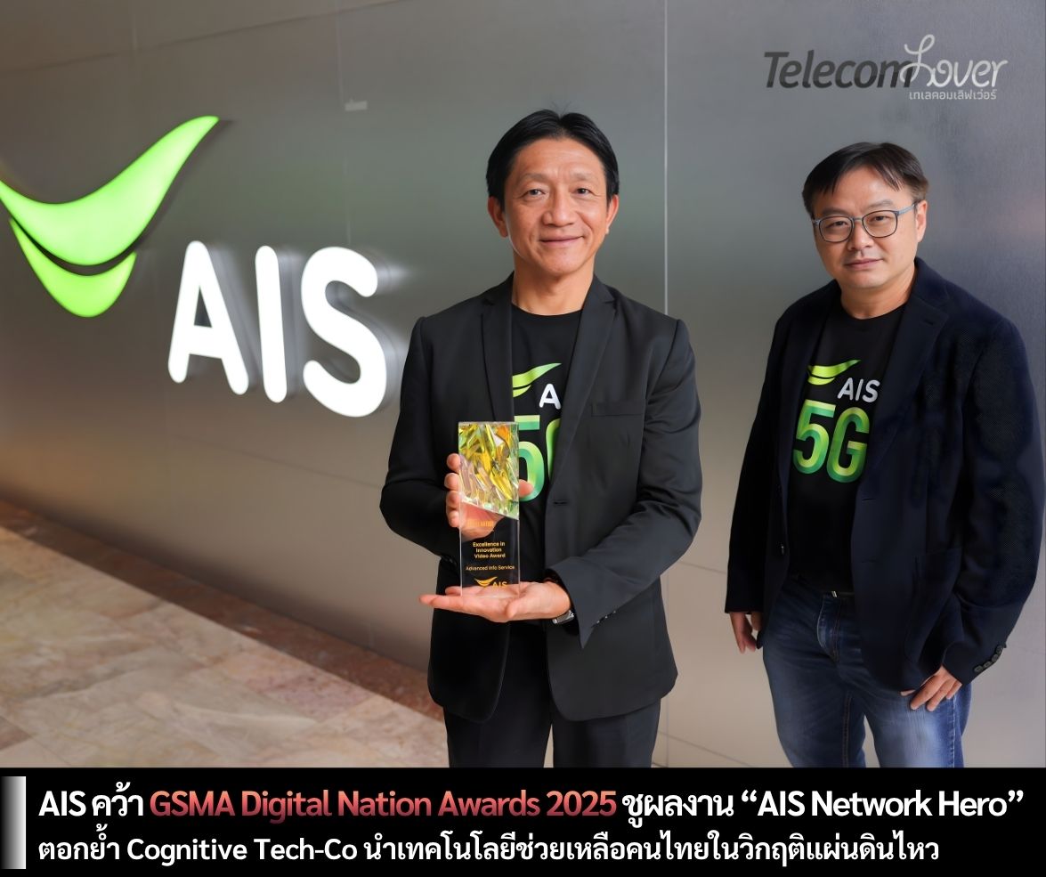 นายกิตติ งามเจตนรมย์ หัวหน้าคณะผู้บริหารด้านเทคโนโลยี AIS กล่าวว่า “เอไอเอสได้แสดงให้เห็นถึงศักยภาพของโครงข่ายดิจิทัลอัจฉริยะ ที่ก้าวข้ามขีดจำกัดของเทคโนโลยี ด้วยการเข้าพื้นที่ปฏิบัติการในยามวิกฤตอย่างทันท่วงที นำรถโมบายและสถานีฐานเคลื่อนที่พิเศษ เสริมกำลังเครือข่าย พร้อมประยุกต์ใช้ Network Data Analytics และ Small Cellular Pinpointing เพื่อระบุตำแหน่งสัญญาณโทรศัพท์ได้อย่างแม่นยำขึ้น สนับสนุนภารกิจค้นหาและช่วยเหลือผู้ประสบภัยอย่างมีประสิทธิภาพ เหตุการณ์ในครั้งนั้นถูกถ่ายทอดเป็นคลิปบันทึกเรื่องราวที่สะท้อนพลังของเทคโนโลยีและหัวใจของทีมงาน จนคว้ารางวัล Excellence in Innovation Award จากเวที GSMA Digital Nation Awards 2025 ซึ่งนับเป็นอีกหนึ่งความภาคภูมิใจของเอไอเอส ที่ตอกย้ำแนวคิด “AI for Sustainable Nation” และแสดงให้เห็นถึงความมุ่งมั่นในการพัฒนาเครือข่ายอัจฉริยะให้แข็งแกร่ง ยั่งยืน และพร้อมเชื่อมต่อทุกชีวิตคนไทยในทุกสถานการณ์