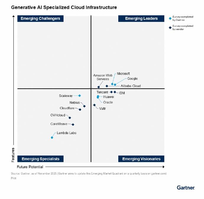 ในปีที่ผ่านมา อาลีบาบา คลาวด์ ได้รับการจัดอันดับให้เป็น Emerging Leader ในทั้งสี่ quadrant ที่ได้รับการประเมินในรายงาน Gartner® “Innovation Guide for Generative AI Technologies” ฉบับก่อนหน้า
