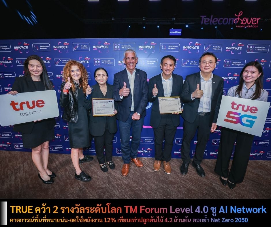 TRUE คว้า 2 รางวัลระดับโลก TM Forum Level 4.0 ชู AI Network คาดการณ์พื้นที่หนาแน่น-ลดใช้พลังงาน 12% เทียบเท่าปลูกต้นไม้ 4.2 ล้านต้น ตอกย้ำ Net Zero 2050