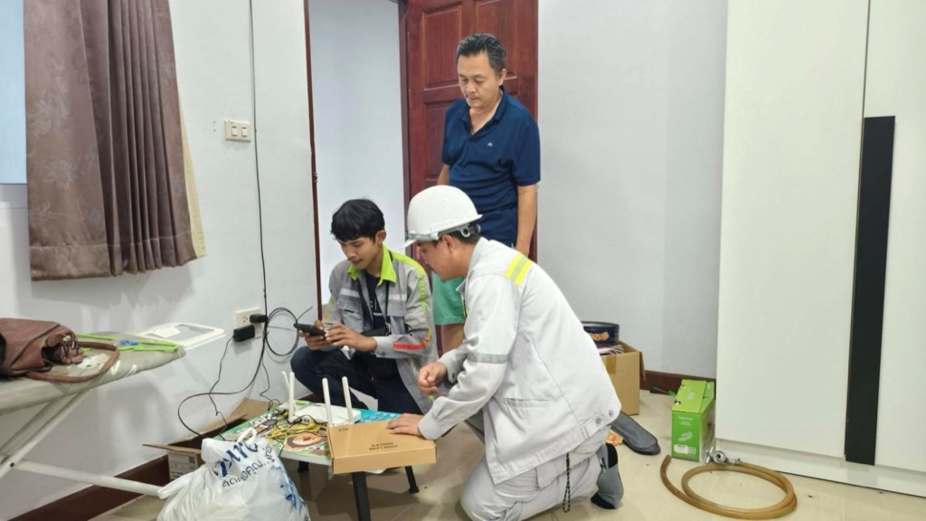 ทีมงานลงพื้นที่ดูแลลูกค้าเชิงรุกถึงหน้าบ้าน เปลี่ยนอุปกรณ์ WiFi Router และ Playbox ที่ชำรุดจากน้ำท่วมให้ใช้งานได้ทันที โดยไม่มีค่าใช้จ่าย สำหรับบ้านที่ไฟฟ้าและโครงข่ายกลับมาพร้อมใช้งานแล้ว โดยไม่ต้องรอให้ลูกค้าแจ้งปัญหา เพื่อช่วยให้ทุกครอบครัวกลับมาเชื่อมต่อออนไลน์ ติดต่อคนใกล้ชิด ทำงาน และใช้ชีวิตได้เร็วที่สุด