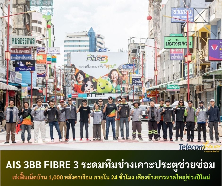 AIS 3BB FIBRE 3 ระดมทีมช่างและวิศวกร กว่า 100 คนจากทั่วประเทศ ลงพื้นที่อำเภอหาดใหญ่ เดินหน้าภารกิจ “AIS 3BB FIBRE 3 เคาะประตูช่วยซ่อม ฟื้นเน็ตไฟเบอร์ให้ถึงบ้าน เคียงข้างชาวหาดใหญ่” พร้อมเป้าหมายดูแลลูกค้าเชิงรุกกว่า 1,000 หลังคาเรือน ภายใน 24 ชั่วโมง ในช่วงที่หลายครอบครัวกำลังเร่งฟื้นฟูบ้านเรือน ทีมงานจึงเร่งฟื้นฟูโครงข่ายอินเทอร์เน็ตบ้านไฟเบอร์ให้กลับมาใช้งานได้อย่างทั่วถึง โดยทีมงานลงพื้นที่ถึงหน้าบ้านลูกค้า ตรวจเช็กสัญญาณ เปลี่ยนอุปกรณ์ที่ชำรุดจากน้ำท่วม ทั้ง Router และกล่อง AIS PLAYBOX ให้พร้อมใช้งานทันที โดยไม่มีค่าใช้จ่าย และไม่ต้องรอให้ลูกค้าแจ้งปัญหา เพื่อเร่งให้สัญญาณไฟเบอร์กลับมาเสถียรโดยเร็ว เพื่อให้ทุกครอบครัวกลับมาเชื่อมต่อออนไลน์ ติดต่อสื่อสารกับคนใกล้ชิด ทำงาน และใช้ชีวิตที่บ้านได้อย่างมีความสุขในช่วงเทศกาลปีใหม่