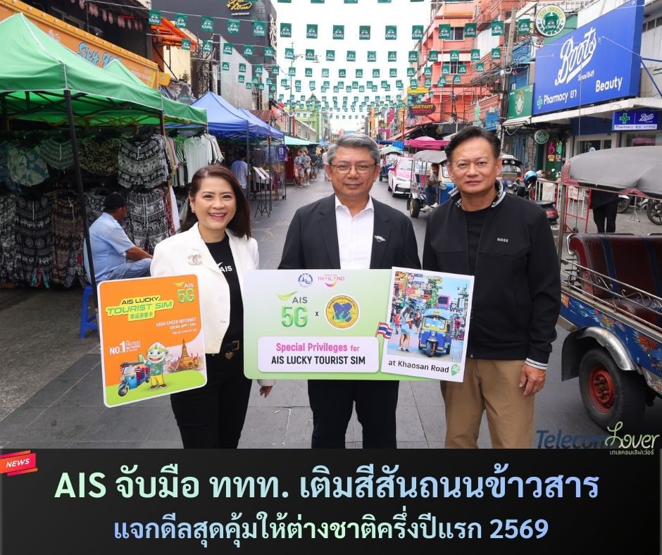 เอไอเอสยกระดับโครงข่ายอัจฉริยะ ใช้ศักยภาพเครือข่ายดึงดูดนักท่องเที่ยว เติมพลังรับปีม้าให้ถนนข้าวสาร แลนด์มาร์คท่องเที่ยวสำคัญของไทยให้คึกคัก โดยจับมือ การท่องเที่ยวแห่งประเทศไทย (ททท.) และสมาคมผู้ประกอบธุรกิจถนนข้าวสาร ร่วมขับเคลื่อนเศรษฐกิจท่องเที่ยว พร้อมมอบสิทธิพิเศษสำหรับนักท่องเที่ยวต่างชาติที่ใช้ AIS LUCKY TOURIST SIM/eSIM รับส่วนลดจาก ร้านดังย่านถนนข้าวสาร อาทิ ส่วนลดโรงแรม 20%, Restaurant & Bar 100 บาท, ร้านสัก 10% และกิจกรรมล่องเรือในราคาพิเศษ 100 บาท ตลอดช่วงเดือนมกราคม–มิถุนายน 2569 สอดรับนโยบายภาครัฐในการผลักดันประเทศไทยสู่ศูนย์กลางการท่องเที่ยวของภูมิภาค โดยมี นายนิธี สีแพร รองผู้ว่าการด้านสื่อสารการตลาด การท่องเที่ยวแห่งประเทศไทย พร้อมด้วย นางเบญจพร กำเพ็ชร หัวหน้าส่วนงานการตลาดกลุ่มลูกค้าพรีเพด เอไอเอส และ นายสง่า เรื่องวัฒนกุล นายกสมาคมผู้ประกอบธุรกิจถนนข้าวสาร ร่วมผนึกกำลังส่งมอบประสบการณ์ท่องเที่ยวสุดประทับใจแก่นักท่องเที่ยวต่างชาติ