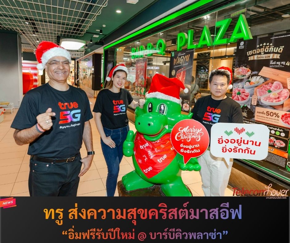 เพราะมื้ออาหารคือช่วงเวลาแห่งความสุขร่วมกัน… ทรู คอร์ปอเรชั่น เดินหน้าสร้างรอยยิ้ม และความประทับใจ เนรมิตบรรยากาศวันคริสต์มาสอีฟให้เต็มไปด้วยความสุขและเสียงหัวเราะ ในกิจกรรม “อัพสัญญาณความสุข อิ่มฟรีรับปีใหม่ @ บาร์บีคิวพลาซ่า” มอบของขวัญสุดพิเศษ “สุขด้วยกันวันคริสต์มาสอีฟ 24 ธันวาคม” ให้ลูกค้าคนสำคัญอิ่มอร่อยกับมื้อพิเศษที่ บาร์บีคิวพลาซ่า ฟรีพร้อมกันทั่วประเทศ เพื่อตอกย้ำความผูกพันผ่านมื้ออาหารที่คัดสรรมาแทนคำขอบคุณลูกค้าจากใจจริง สานต่อแคมเปญ “ยิ่งอยู่นาน ยิ่งรักกัน” พร้อมเซอร์ไพรส์จากทีมผู้บริหาร ทรู คอร์ปอเรชั่น นำโดย คุณชารัด เมห์โรทรา หัวหน้าคณะผู้บริหารด้านกลุ่มธุรกิจลูกค้าบุคคล, คุณโอลิเวอร์ กิตติพงษ์ วีระเตชะ หัวหน้าคณะผู้บริหารด้านแบรนด์และมีเดีย, คุณสรรค์พิจิตร เอี่ยมชีรางกูร หัวหน้าสายงานบริหารความสัมพันธ์และผสานสิทธิประโยชน์ลูกค้า ลงพื้นที่มาต้อนรับและขอบคุณลูกค้าคนสำคัญที่อยู่กับทรูด้วยกันมายาวนาน