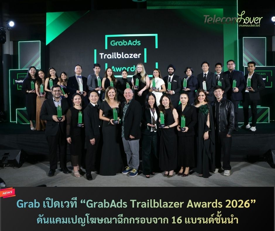 Grab ประเทศไทย ตอกย้ำความเป็นผู้นำซูเปอร์แอปและโซลูชันการตลาดดิจิทัล จัดงานประกาศรางวัล “GrabAds Trailblazer Awards 2026” ขึ้นเป็นครั้งแรก เพื่อยกย่องแบรนด์และเอเจนซี่ชั้นนำที่สามารถสร้างสรรค์แคมเปญโฆษณาผ่านอีโคซิสเต็มของ Grab ได้อย่างโดดเด่นและมีประสิทธิภาพ โดยในปีแรกมีการมอบรางวัลรวม 18 สาขา ให้แก่ 16 แบรนด์ที่กล้าบุกเบิกการตลาดรูปแบบใหม่