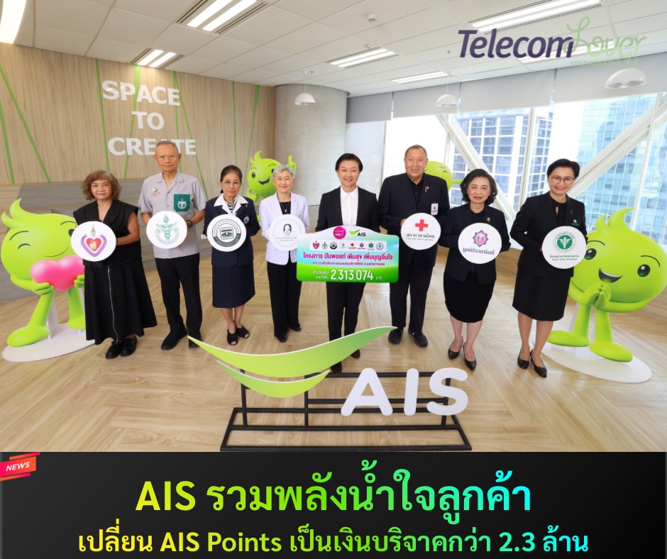 AIS ตอกย้ำพันธกิจในการใช้ดิจิทัลแพลตฟอร์มเป็นพลังขับเคลื่อนสังคม ผ่านโครงการ “ปันพอยท์ เติมสุข เพิ่มบุญอิ่มใจ” โดยทำหน้าที่เป็นสื่อกลางให้ลูกค้าสามารถเปลี่ยนคะแนนสะสม AIS Points ให้กลายเป็น “คะแนนบุญ”เพื่อบริจาคสนับสนุนมูลนิธิและองค์กรการกุศลต่างๆ ได้อย่างสะดวกผ่านแอปพลิเคชัน myAIS โดยล่าสุด AIS พร้อมส่งมอบเงินบริจาครวมทั้งสิ้น 2,313,074 บาท ให้แก่ 8 องค์กรการกุศล ที่เข้าร่วมโครงการ ได้แก่ มูลนิธิหัวใจแห่งประเทศไทย ในพระบรมราชูปถัมภ์, มูลนิธิแพทย์อาสาสมเด็จพระศรีนครินทราบรมราชชนนี, มูลนิธิช่วยคนตาบอดแห่งประเทศไทยในพระบรมราชินูปถัมภ์, มูลนิธิโรงพยาบาลหาดใหญ่, มูลนิธิโรงพยาบาลเด็ก กองทุนอาคารเฉลิมพระเกียรติฯ, สภากาชาดไทย, มูลนิธิรามาธิบดีฯ และโรงพยาบาลขอนแก่น ซึ่งยอดเงินบริจาคดังกล่าวเกิดจากการให้ลูกค้าเปลี่ยนคะแนน AIS Points เป็นเงินบริจาค (ทุก 1 คะแนน = 10 สตางค์) ตั้งแต่ระยะเวลา 1 มิถุนายน 2568 – 31 ธันวาคม 2568 สะท้อนพลังน้ำใจของลูกค้าที่ร่วมกันส่งต่อโอกาส ความหวัง และการช่วยเหลือไปยังภาคส่วนต่างๆ ของสังคม ผ่านคะแนนจากการใช้งานบริการ AISในชีวิตประจำวัน