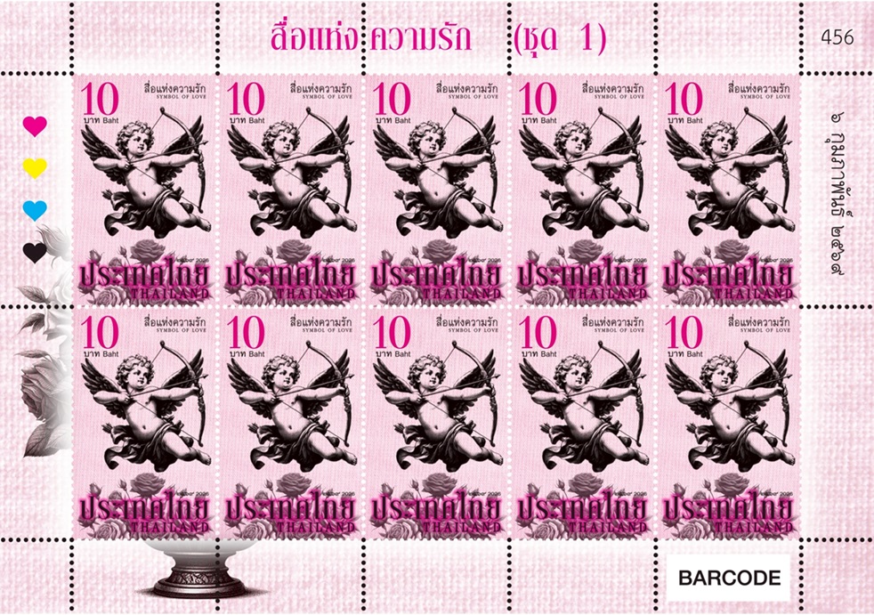 แสตมป์ชุดนี้มาใน 2 รูปแบบงานศิลป์ที่แตกต่างกัน ได้แก่ ชุดกามเทพสไตล์กรีกคลาสสิกที่ใช้ลายเส้นสีดำบนพื้นหลังสีชมพู ให้ความรู้สึกเรียบง่ายและโรแมนติก และชุดกามเทพสีสันสดใสบนพื้นหลังสีขาวที่สื่อถึงความรักวัยใสที่เต็มไปด้วยพลัง โดยจำหน่ายในราคาดวงละ 10 บาท (1 แผ่น มี 10 ดวง) และซองวันแรกจำหน่ายราคา 22 บาท