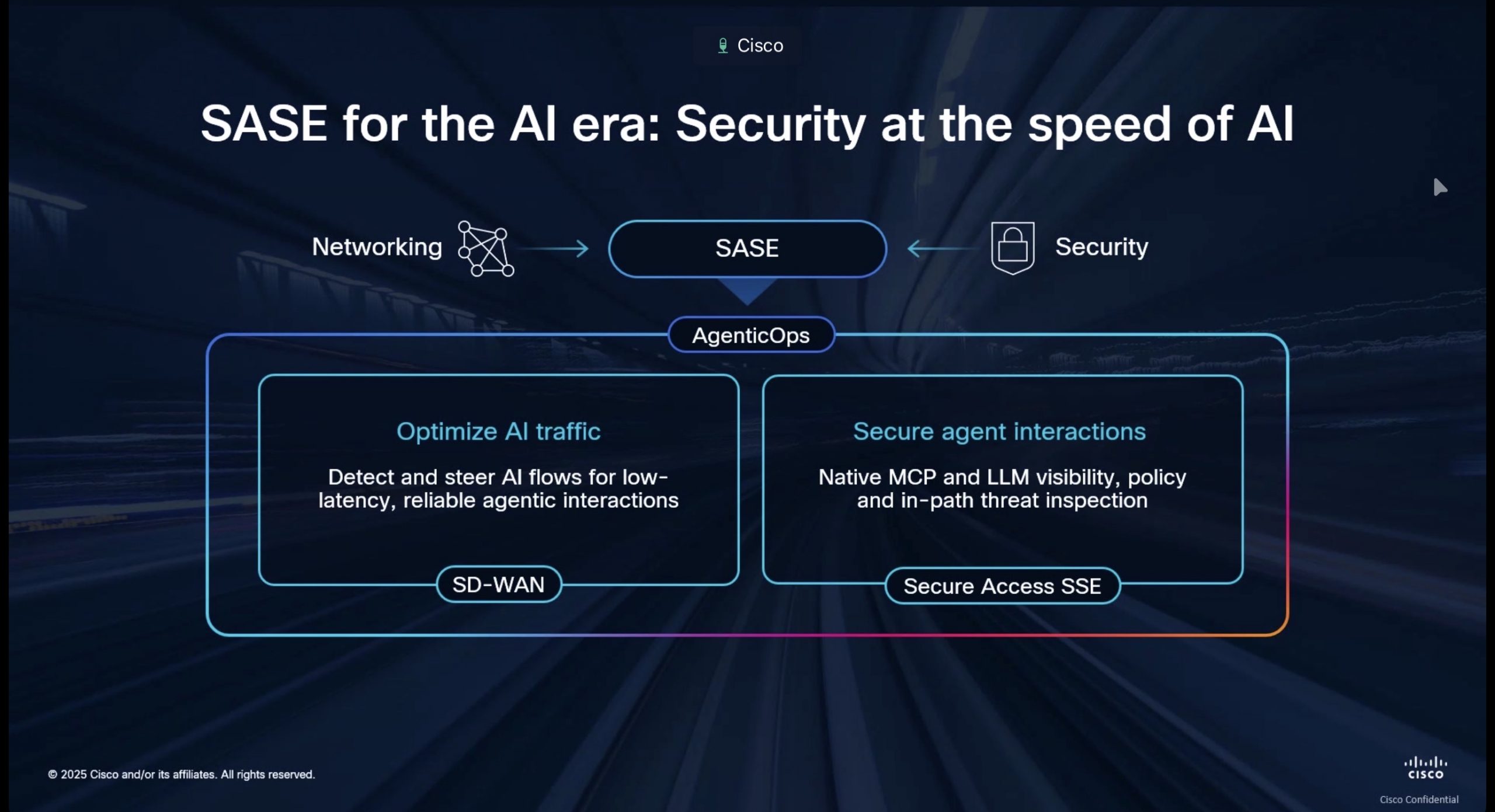 Secure Access ในโมเดล SASE ถูกยกระดับด้วย intent-aware inspection วิเคราะห์พฤติกรรมและเจตนาของทราฟฟิก agentic เพื่อลดภัยคุกคามรูปแบบใหม่ และควบคุม agentic interactions ได้แม่นยำยิ่งขึ้น