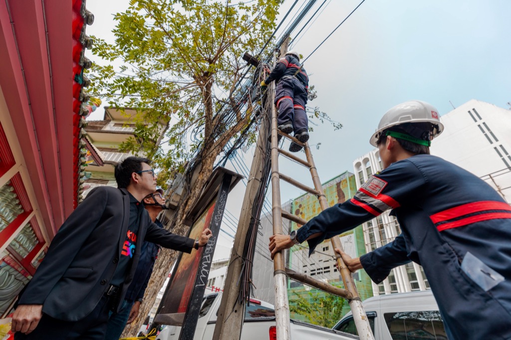 ทรู คอร์ปอเรชั่น ผนึกความร่วมมือกับ สำนักงานคณะกรรมการกิจการกระจายเสียง กิจการโทรทัศน์ และกิจการโทรคมนาคมแห่งชาติ (กสทช.) และการไฟฟ้านครหลวง (MEA) และพันธมิตร เพื่อร่วมเฉลิมฉลองเทศกาลตรุษจีน เปิดศักราชรับปีม้ามงคล เดินหน้าปฏิบัติการรื้อถอนและนำสายสื่อสารลงใต้ดิน เนรมิตทัศนียภาพของแหล่งท่องเที่ยวสำคัญให้สวยงามและปลอดภัย พร้อมต้อนรับนักท่องเที่ยวจากทั่วทุกมุมโลกในเทศกาลตรุษจีน ปี 2569 โดยได้รับเกียรติจาก นายสุทธิศักดิ์ ตันตะโยธิน (ที่ 4 จากซ้าย) รองเลขาธิการ กสทช. นายราเชนทร์ อันเวช (ที่ 3 จากซ้าย) รองผู้ว่าการเทคโนโลยีดิจิทัลและระบบสื่อสาร การไฟฟ้านครหลวง (MEA) และนายกนกศักดิ์ นิ่มนวลรัตน์ (ที่ 2 จากซ้าย) หัวหน้าฝ่ายรัฐกิจและสาธารณูปโภค บจม.ทรู คอร์ปอเรชั่น นำทีมวิศวกรลงพื้นที่ปฏิบัติการอย่างใกล้ชิด พร้อมติดตามความคืบหน้าและสนับสนุนการดำเนินงานบริเวณพื้นที่ถนนเยาวราช