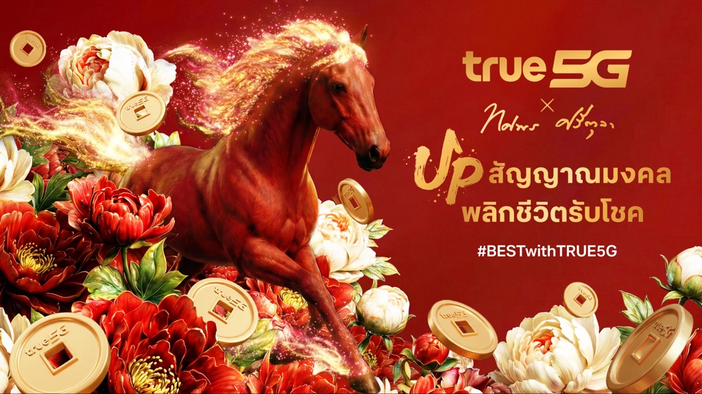 รวย เฮง ปัง ต้อนรับตรุษจีนปีม้า …  ทรู 5G เสิร์ฟแคมเปญตรุษจีนปีม้า 2569 ภายใต้แนวคิด UP สัญญาณมงคล พลิกชีวิตรับโชค” มอบโปรพิเศษ และอั่งเปาคุ้มฉ่ำ พร้อมร่วมกับ อ.ช้าง ทศพร ศรีตุลา ออกแบบและสร้างสรรค์ผลงาน “ม้ามงคล” ในดีไซน์ร่วมสมัยแบบฉบับทรู 5G ถ่ายทอดความหมายของความรวดเร็ว พลังอำนาจ และการก้าวกระโดด  ส่งพลังความมงคลให้ตื่นตากับผลงานผ่านจอดิจิทัลที่สยามสแควร์ และเสิร์ฟพลังโชคลาภถึงมือลูกค้าทรู ดีแทค กับ สติ๊กเกอร์ม้ามงคล รับฟรีได้ที่ทรูช็อปกว่า 130 สาขาทั่วประเทศ