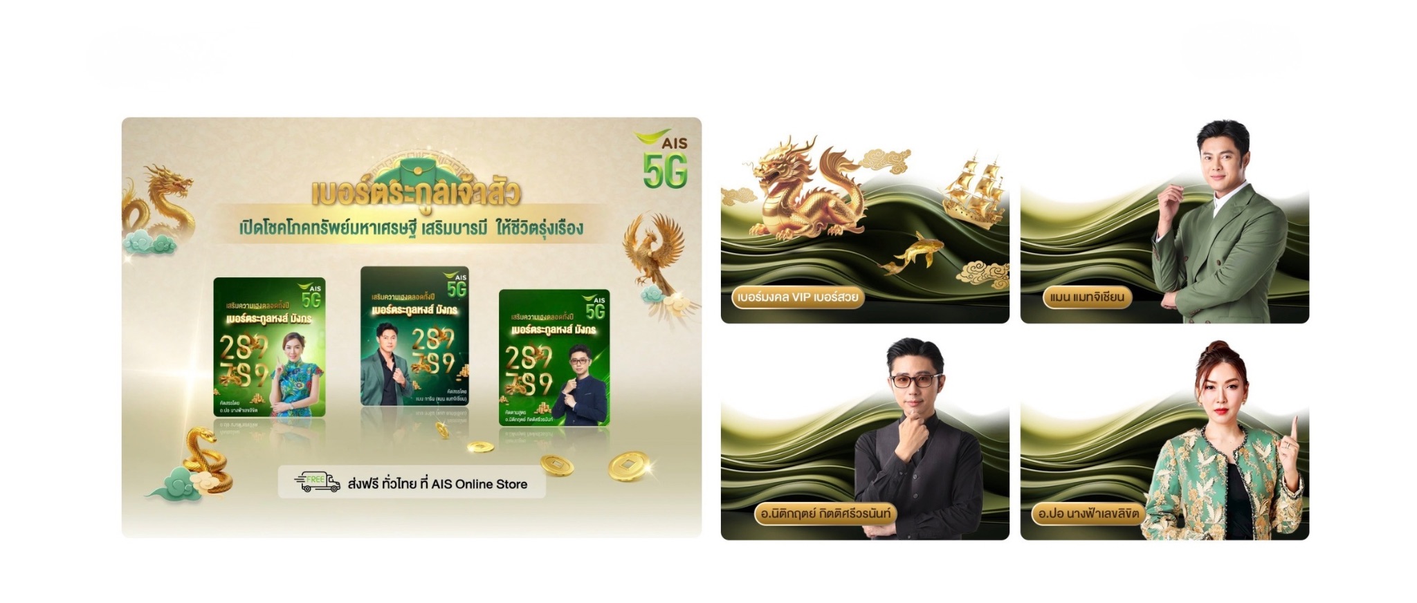 ปีนี้ AIS เปิดแคมเปญเบอร์มงคลรับตรุษจีน ด้วยแนวคิดการคัดสรรที่ผสานทั้งเทคโนโลยี AI และศาสตร์ตัวเลขจากผู้เชี่ยวชาญชื่อดังอย่าง แมน การิน, อ.ปอ นางฟ้าเลขลิขิต และ อ.นิติกฤตย์ เพื่อคัดสรรเบอร์มงคลแบบ “ตัวท็อป” ภายใต้แนวคิดเบอร์คู่แท้ เน้นความลงตัวและหลีกเลี่ยงคู่เสีย ให้คุณได้เลือกจากเบอร์ที่ถูกคัดมาอย่างเข้มข้นในระดับสุดยอดมงคล