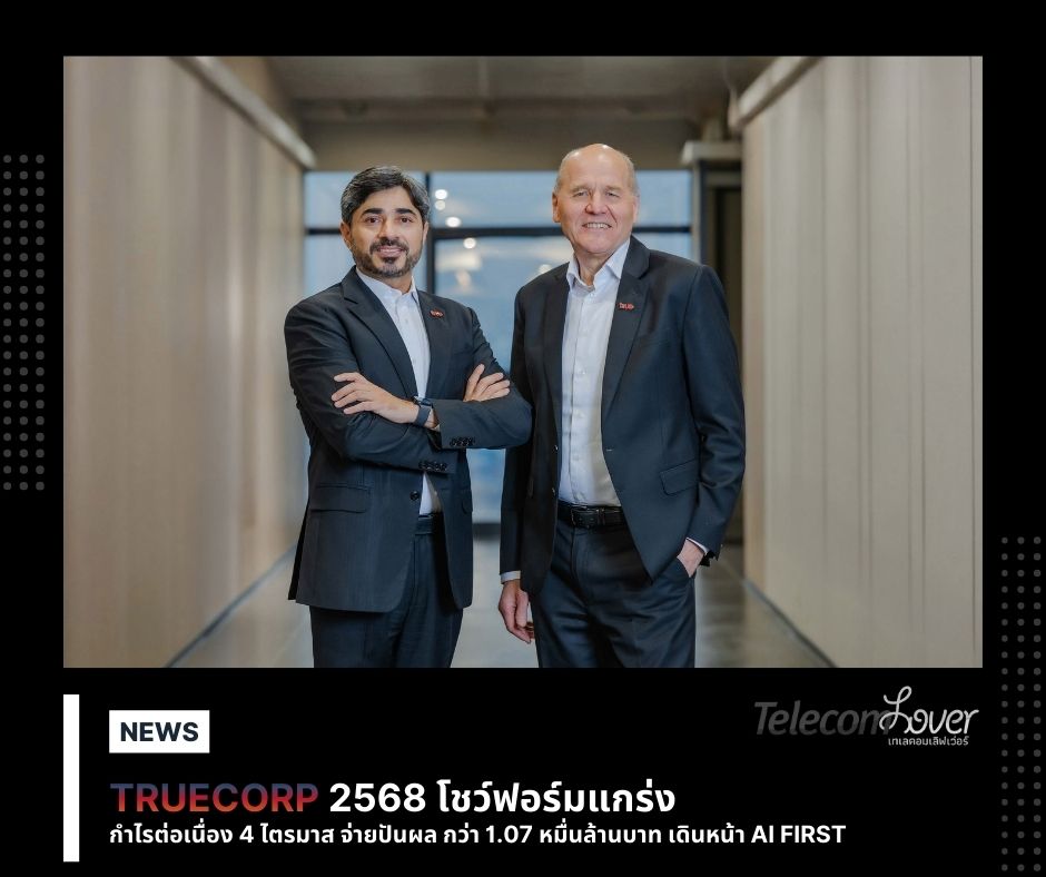 True Corporation รายงานผลประกอบการไตรมาส 4/2568 มีกำไรสุทธิ 4 พันล้านบาท และกำไรปกติ 6.1 พันล้านบาท สร้างกำไรต่อเนื่องเป็นไตรมาสที่ 4 ติดต่อกัน พร้อมเสนอจ่ายเงินปันผล 4.1 พันล้านบาท ส่งผลให้เงินปันผลรวมทั้งปี 2568 อยู่ที่ 1.07 หมื่นล้านบาท สะท้อนฐานะการเงินแข็งแกร่งหลังการควบรวมและการบริหารต้นทุนโครงข่าย