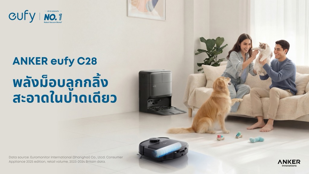 eufy แบรนด์สมาร์ทโฮมในเครือ ANKER เปิดตัวหุ่นยนต์ดูดฝุ่น 2 รุ่นใหม่ Omni S2 และ Omni C28 ในไทย เสริมไลน์ C-E-S Series ครบทุกระดับราคา ตอบโจทย์บ้านหลากสไตล์โดยเฉพาะครอบครัวที่มีสัตว์เลี้ยง พร้อมชูเทคโนโลยี Roller Mop และระบบดูแลขนสัตว์แบบไม่พันกัน สะท้อนเทรนด์สมาร์ทโฮมและการทำความสะอาดอัตโนมัติที่เติบโตต่อเนื่องในครัวเรือนไทยยุคใหม่