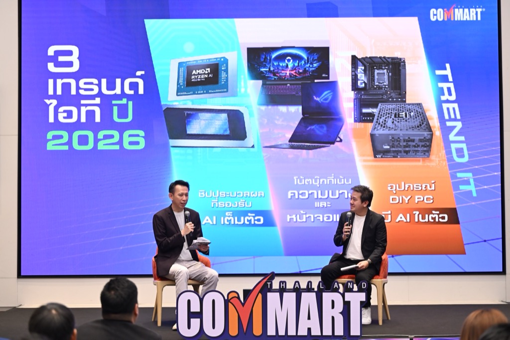 ผู้จัดงานระบุว่า ปี 2569 เป็นจุดเปลี่ยนสำคัญของอุตสาหกรรมไอที เมื่อคอมพิวเตอร์ที่ติดตั้งชิป AI จะมีสัดส่วนกว่า 55% ของยอดส่งมอบทั่วโลก สะท้อนการเข้าสู่ยุค AI PC อย่างชัดเจน งาน COMMART GAMEFORCE จึงออกแบบให้เป็นศูนย์กลางเทคโนโลยี AI ครบวงจร ครอบคลุมโน้ตบุ๊ก AI, Gaming PC, การ์ดจอ, อุปกรณ์เกมมิ่ง และซอฟต์แวร์แท้ พร้อมโปรโมชั่นและกิจกรรมสำหรับผู้บริโภคทุกระดับตั้งแต่มือใหม่ถึงฮาร์ดคอร์
