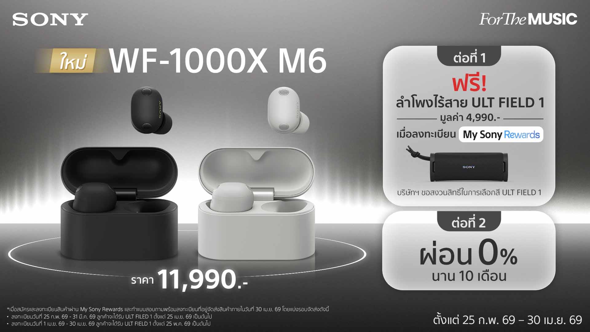 SONY THAI ประกาศวางจำหน่าย WF-1000XM6 หูฟัง Truly Wireless ระดับพรีเมียมรุ่นล่าสุดในตระกูล 1000X Series ภายใต้แนวคิด “อินเต็มเสียง ตัดทุกนอยส์” โดยยกระดับประสิทธิภาพการตัดเสียงรบกวน (Noise Cancelling) ให้ดีกว่ารุ่นเดิมถึง 25% โดยเฉพาะในย่านเสียงกลางถึงสูง ด้วยขุมพลังจากชิปประมวลผล HD Noise Cancelling Processor QN3e ทำงานร่วมกับไมโครโฟน 4 ตัว และชิปอัจฉริยะ Integrated Processor V2
