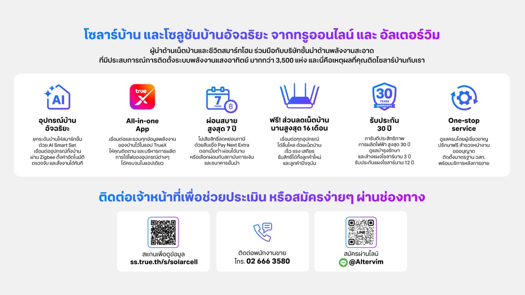 รายละเอียดเพิ่มเติม https://ss.true.th/s/solarcellpr