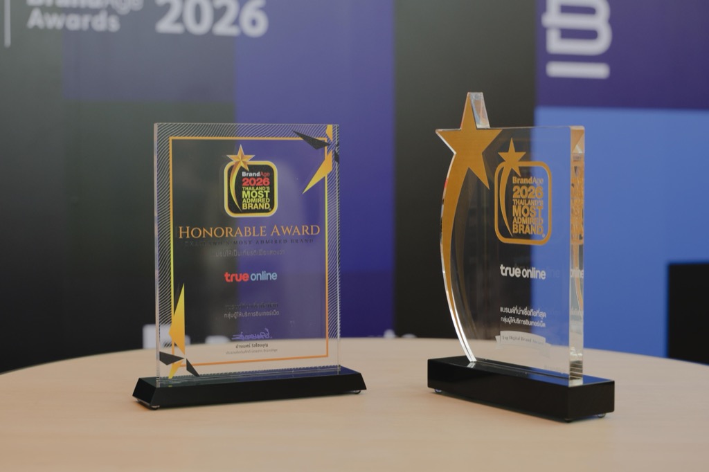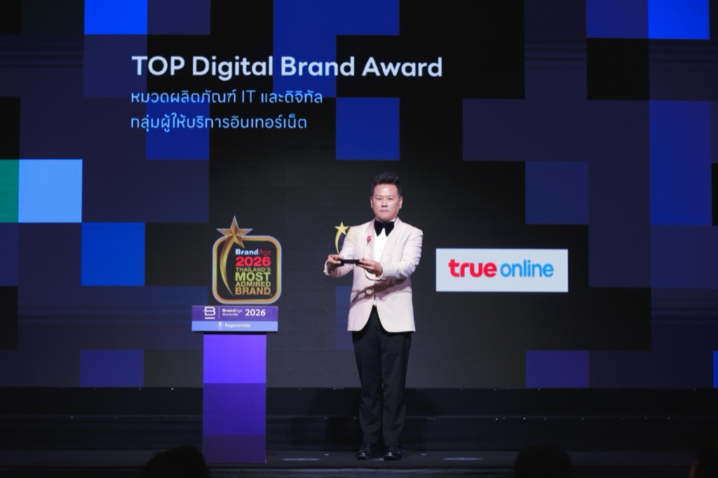 ทรูออนไลน์ คว้ารางวัลพิเศษ Top Digital Brand Award พร้อมครอง Thailand’s Most Admired Brand 2026 ในหมวดผลิตภัณฑ์ IT และดิจิทัล กลุ่มผู้ให้บริการอินเทอร์เน็ตต่อเนื่องเป็นปีที่ 13 การันตีความเป็น แบรนด์ผู้นำที่น่าเชื่อถือที่สุดในอุตสาหกรรมผู้ให้บริการอินเทอร์เน็ต จากผลสำรวจของ BrandAge สะท้อนความไว้วางใจจากผู้บริโภคทั่วประเทศ และความเชื่อมั่นต่อคุณภาพโครงข่ายและบริการที่พัฒนาอย่างต่อเนื่อง โดยมี คุณโอลิเวอร์ กิตติพงษ์ วีระเตชะ หัวหน้าคณะผู้บริหารด้านแบรนด์และการสื่อสาร บมจ. ทรู คอร์ปอเรชั่น เป็นตัวแทนรับมอบรางวัล
