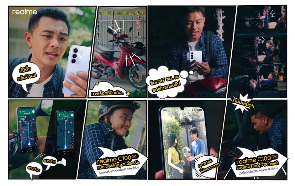 ซีรีส์ดังกล่าวมาในรูปแบบวิดีโอสั้นแนวตั้งสำหรับ TikTok จำนวน 3 ตอน ถ่ายทอดเรื่องราวการเดินทางกลับบ้านในช่วงสงกรานต์ผ่านสถานการณ์ที่หลายคนคุ้นเคย ทั้งความวุ่นวายระหว่างทาง ความท้าทายที่ไม่คาดคิด และช่วงเวลาแห่งความสุขเมื่อถึงปลายทาง โดยยังคงโทนตลกขบขัน ดูง่าย และอิงจากชีวิตจริง ทำให้ผู้ชมสามารถอินไปกับเรื่องราวได้อย่างต่อเนื่องตั้งแต่ต้นจนจบ โดยไฮไลต์ของซีรีส์นี้อยู่ที่การเล่าเรื่องที่ทำให้ “มือถือ” กลายเป็นส่วนหนึ่งของการเดินทาง โดย realme C100 5G ถูกวางบทเป็นเหมือนเพื่อนร่วมทริปที่อยู่ในทุกโมเมนต์ ตั้งแต่ช่วงเริ่มออกเดินทางไปจนถึงปลายทางของเรื่องราว