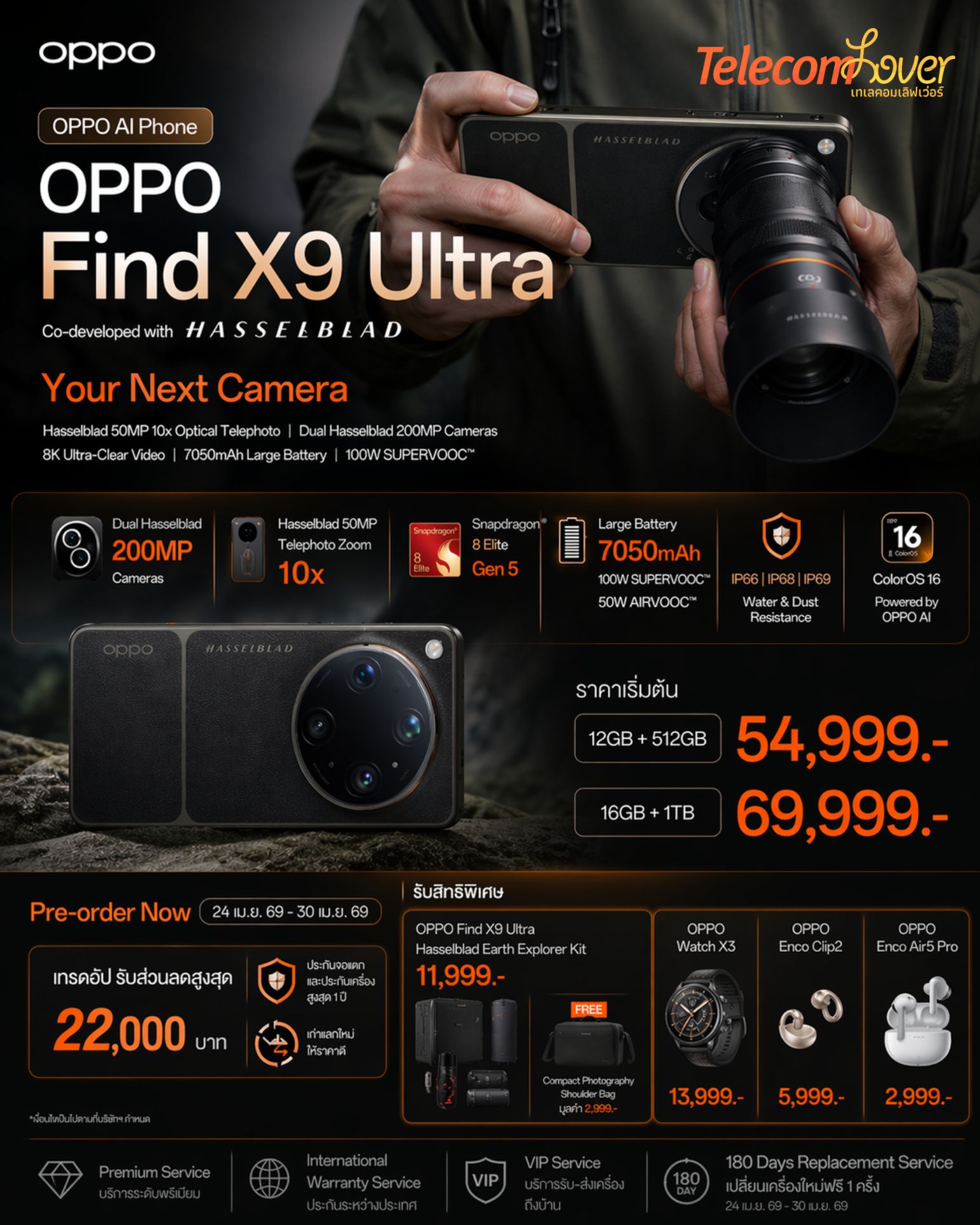 ผู้ที่สนใจจับจอง OPPO Find X9 Ultra รับของสมนาคุณสุดพิเศษ ดังนี้