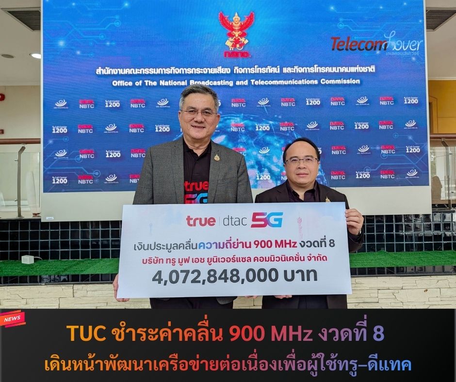TUC ชำระค่าคลื่น 900 MHz งวดที่ 8 รวม 4,072.85 ล้านบาท เดินหน้าพัฒนาเครือข่ายต่อเนื่องเพื่อผู้ใช้ทรู–ดีแทค